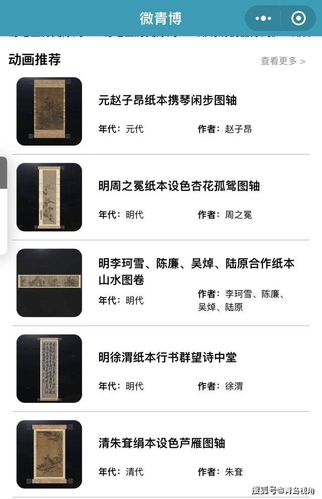 人物行走画端,花木随风而动,鸟儿山间低鸣,青岛市博物馆珍藏的书画作品,变身一组组水墨动画片,让人犹如置身画卷中,沉浸式体验画家苍劲的画功,感受不同朝代的自然风光。