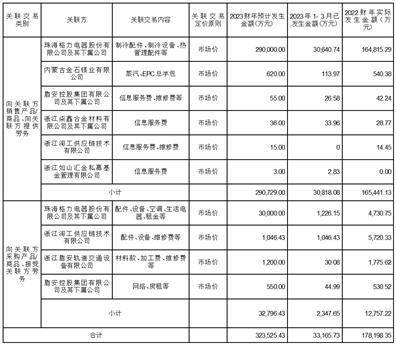 预计公司及下属公司拟与关联方在2023财务年度(2023年1月1日至2023年12月31日,以下简称“2023财年”)发生的关联交易金额不超过32.35亿元;拟与珠海格力电器股份有限公司(以下简称“格力电器”)在2024冷年年度(2023年8 月1日至2024年7月31日,以下简称“2024冷年”)发生的关联交易金额不超过32亿元。