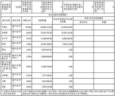 (1) 普通股股东和表决权恢复的优先股股东数量及前10名股东持股情况表