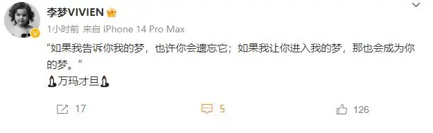演员李梦引用导演万玛才旦电影《撞死了一只羊》中的台词“如果我告诉你我的梦,也许你会遗忘它;如果我让你进入我的梦,那也会成为你的梦”来悼念他。