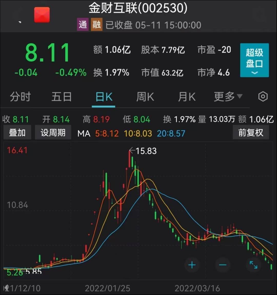 2022年初,因沾上“数字货币”概念,金财互联股价直线飙升。自2022年1月13日起,短短17个交易日共收获了11个涨停,股价站上15.83元的阶段新高。