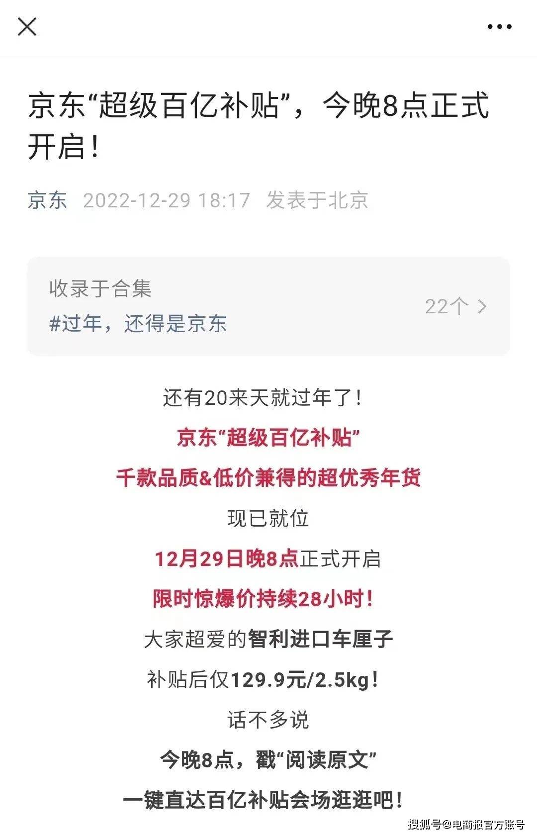 事实上,京东在2022年双十一和2023年年货节,已经初步试水了百亿补贴活动。