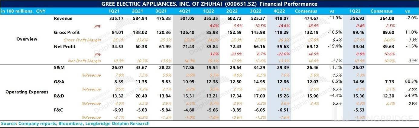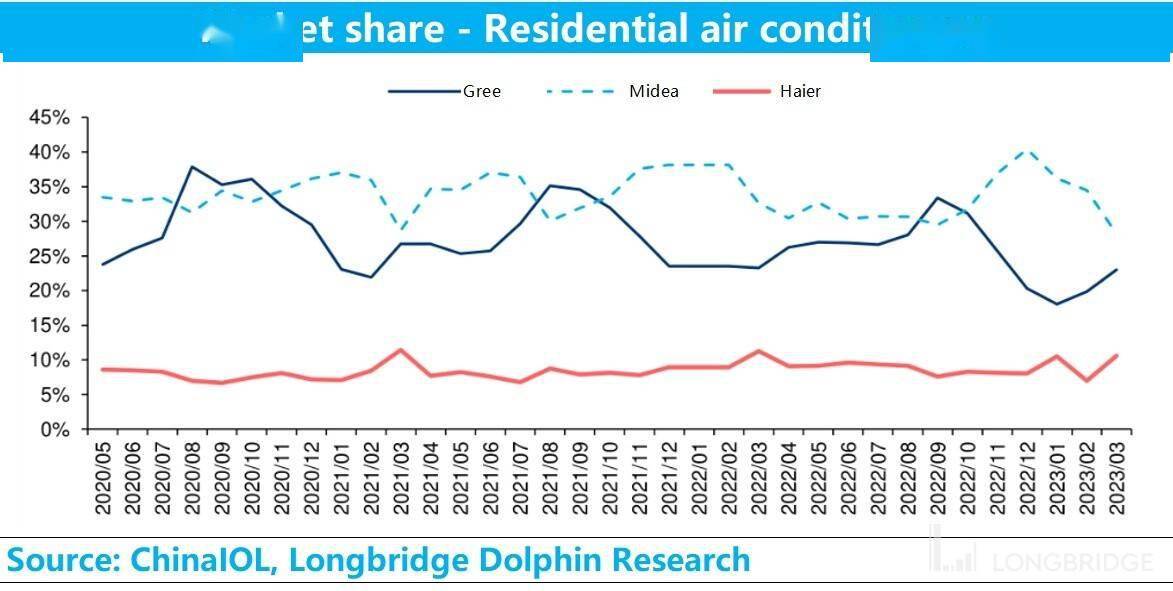 而今年开始,正好相反。相比之下,格力电器的业务更集中一些,敞口也大部分集中在国内。因此,虽然公司去年四季度的表现不算特别理想,今年一季度的恢复程度也比较有限,但是目前在家用空调内需表现更有韧性的环境下,聚焦弹性更大的公司应该是更好的选择。