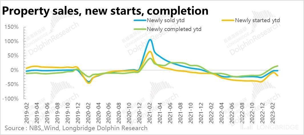 目前家用电器仍有比较大的敞口在地产(还有一部分在更新换代),但关联性比家具要稍微弱一些。因此,从去年年底开始地产行业陆续出台相关政策,对家电板块的刺激较为有限。但是落实到实际数据上,从今年销售、新开工以及竣工数据来看,由于基数的原因,目前增速还算看得过去。