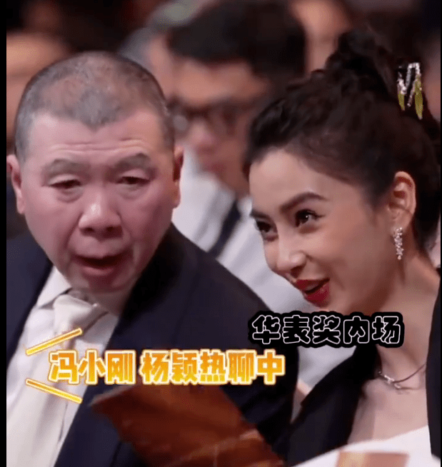 当晚冯小刚的镜头并不多,有人拍到他和杨颖在座位上聊得火热。