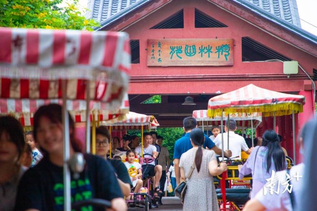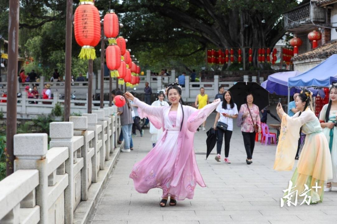 走进南社古村景区,映入眼帘的便是穿着汉服“打卡”的游客。五一期间,他们可以体验一系列“古风”旅游项目,包括游船粤剧、醒狮表演、古琴、香道、农耕巡游、婚庆巡游表演、梦回南社情景剧等,可以品尝蒲米、松糕等传统小吃,享受不一样的“慢”旅行。