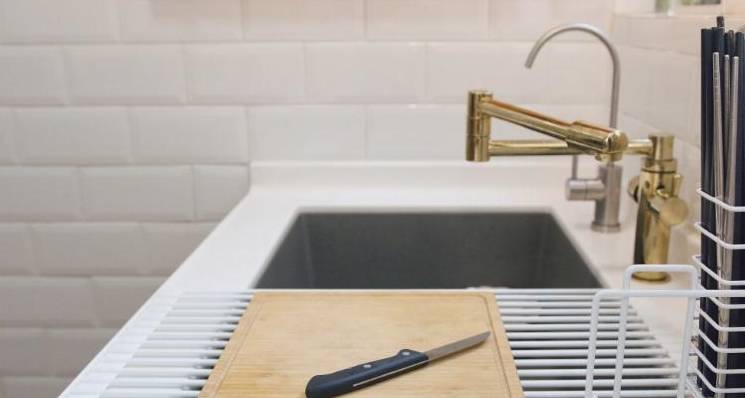 如果需要沥水的位置,可以在水槽上添加一个沥水卷帘,能平铺沥水切菜,也能卷起来收纳,实用便捷。
