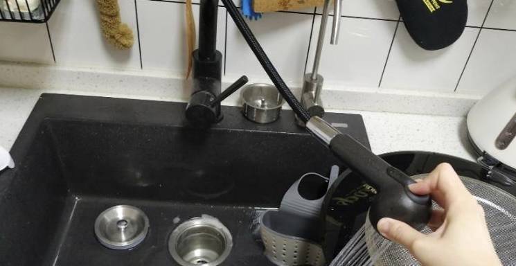 5、抽拉水龙头用往下拉的这几年抽拉水龙头特别火,很多人去逛家具商城都会有店家推荐。但建议不要选这种往下拉的,时间久了,水进入抽拉管内,里面的弹簧被锈蚀损坏,水龙头就无法收回了,用的时候就非常麻烦。