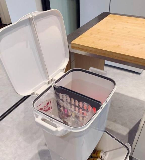 有干、湿、可回收垃圾,三个分类,比普通垃圾桶更实用。