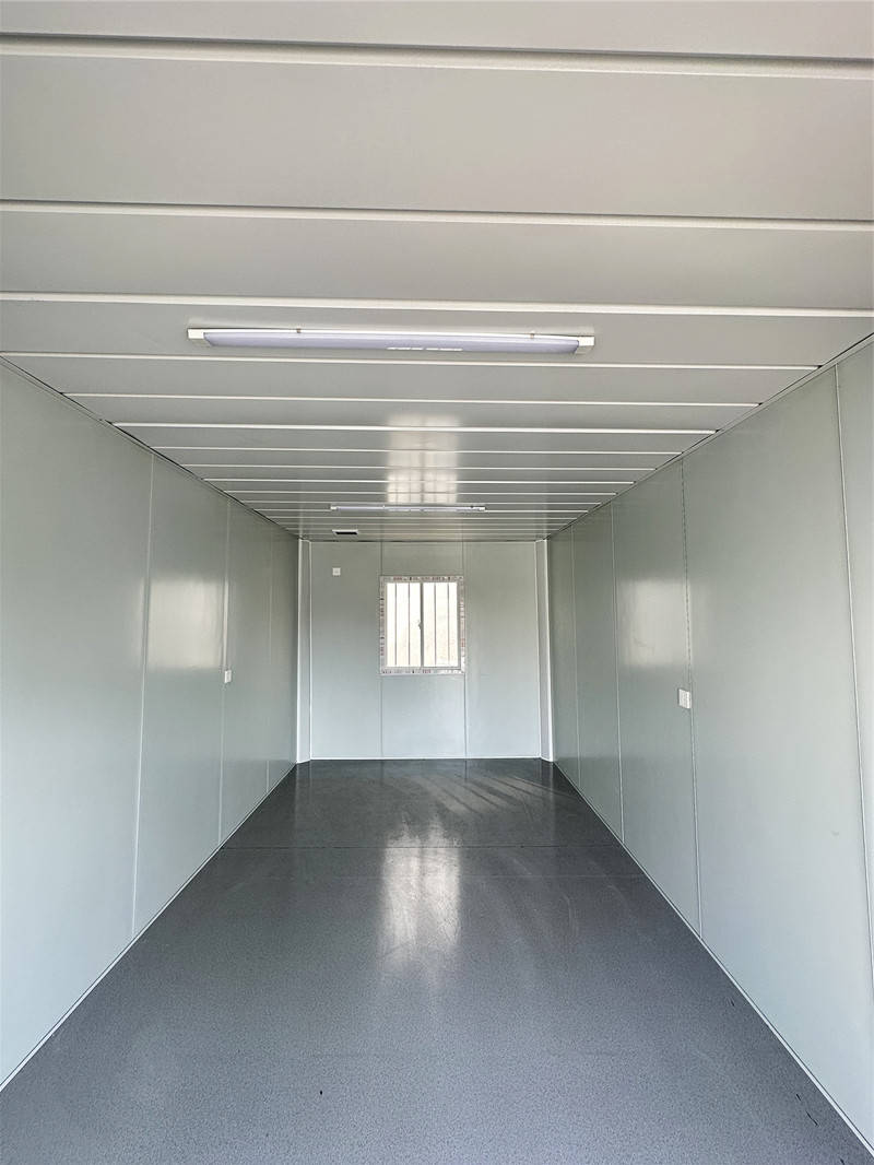 集装箱活动房是在海运箱的基础上演变来的,只是延续了海运箱的外观风格,瓦楞波纹面板,但材料不同,集装箱活动房主要用于临时住人或办公,所以墙体和顶部材料用的是能够防火保温隔热的岩棉。这种波纹整体焊接式的箱式活动房一般布明线就可以了,就是能够看得见线槽的。