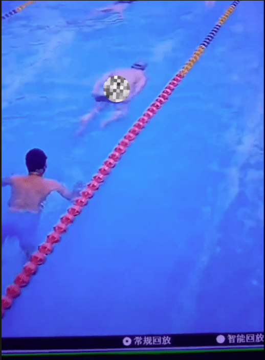 7月24日,一段游泳池的监控在网上引发关注。视频里,在泳池的一条泳道里,两名男子正在一前一后游泳,前方的男子突然用手扯动自己的泳裤,随后被打上马赛克。另一个视频显示,泳池水已被抽空。
