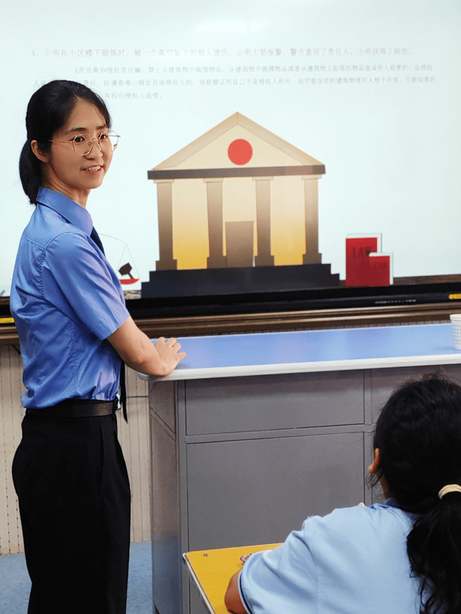 课堂上,检察干警通过生动有趣的多媒体课件,结合与学生联系紧密的民事行为能力等民法知识,讲述《民法典》在日常生活中的实际应用,用“案例+条文”的形式,图文并茂向学生讲解了《民法典》相关规定,让学生深刻地认识到民法典与日常生活息息相关,也让学生体会到民法典像慈母般守护我们一生。