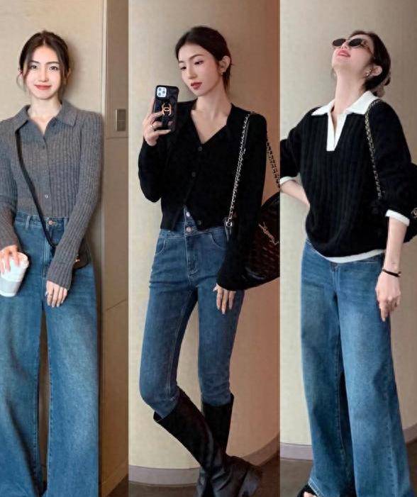 作为经典单品,牛仔裤无论何时何地都能穿出自信与魅力。天冷的时候,牛仔裤也是必备单品。秋季牛仔裤的面料更加百搭,所以我们可以选择稍微厚一点的牛仔面料来搭配。厚实挺括的面料制成的牛仔裤在穿着时可以很好地改变你的腿型。在选择牛仔裤的款式时,我们可以尝试微喇、直筒或阔腿等款式。如果你个子高,腰细,大腿窄,可以选择浅靴剪裁的高腰牛仔裤,这样会让腿看起来更长,比例也更匀称。对于腿型不太完美的人来说,选择高腰阔腿裤是一个不错的选择。这样不仅可以塑造腿型,还能展现出帅气优雅的美感。