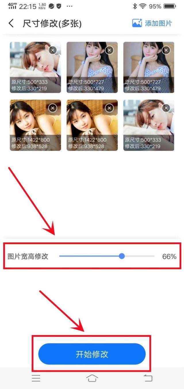 第四步:图片全部添加完成之后,用户们可以自由调整图片的宽高比例,最后点击一下“开始修改”按钮就可以了。