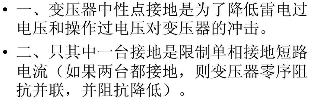 2、变压器中、低压侧有电源时,则变压器中性点必须直接接地,以防止高压侧断路器跳闸,变压器成为中性点绝缘系统;
