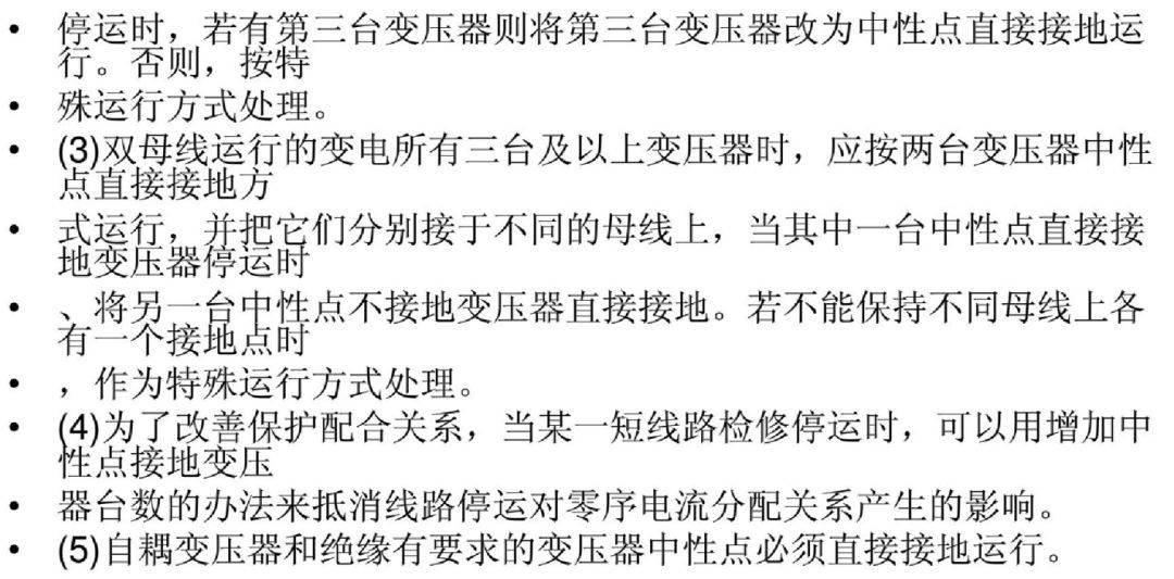 1、在双母线运行时,应考虑当母联开关跳闸后,保证被分开的两个系统至少应有一台变压器中性点接地;