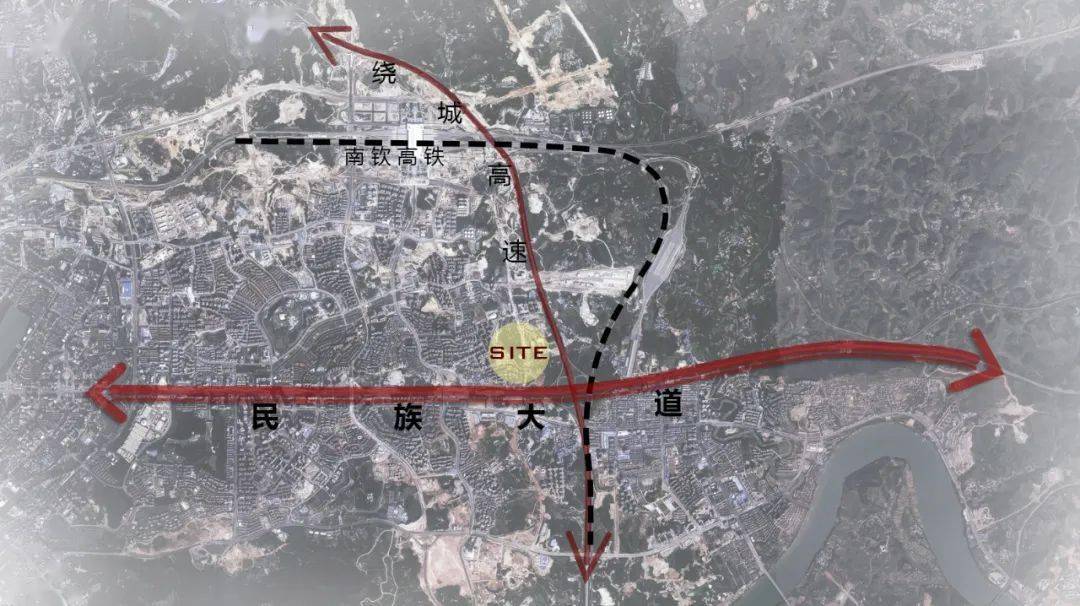 项目位于青秀区西部,高坡岭路、大渌岭路交叉口西北角,紧邻城市主干道,距离南宁名片、壮乡第一路的民族大道仅300米。