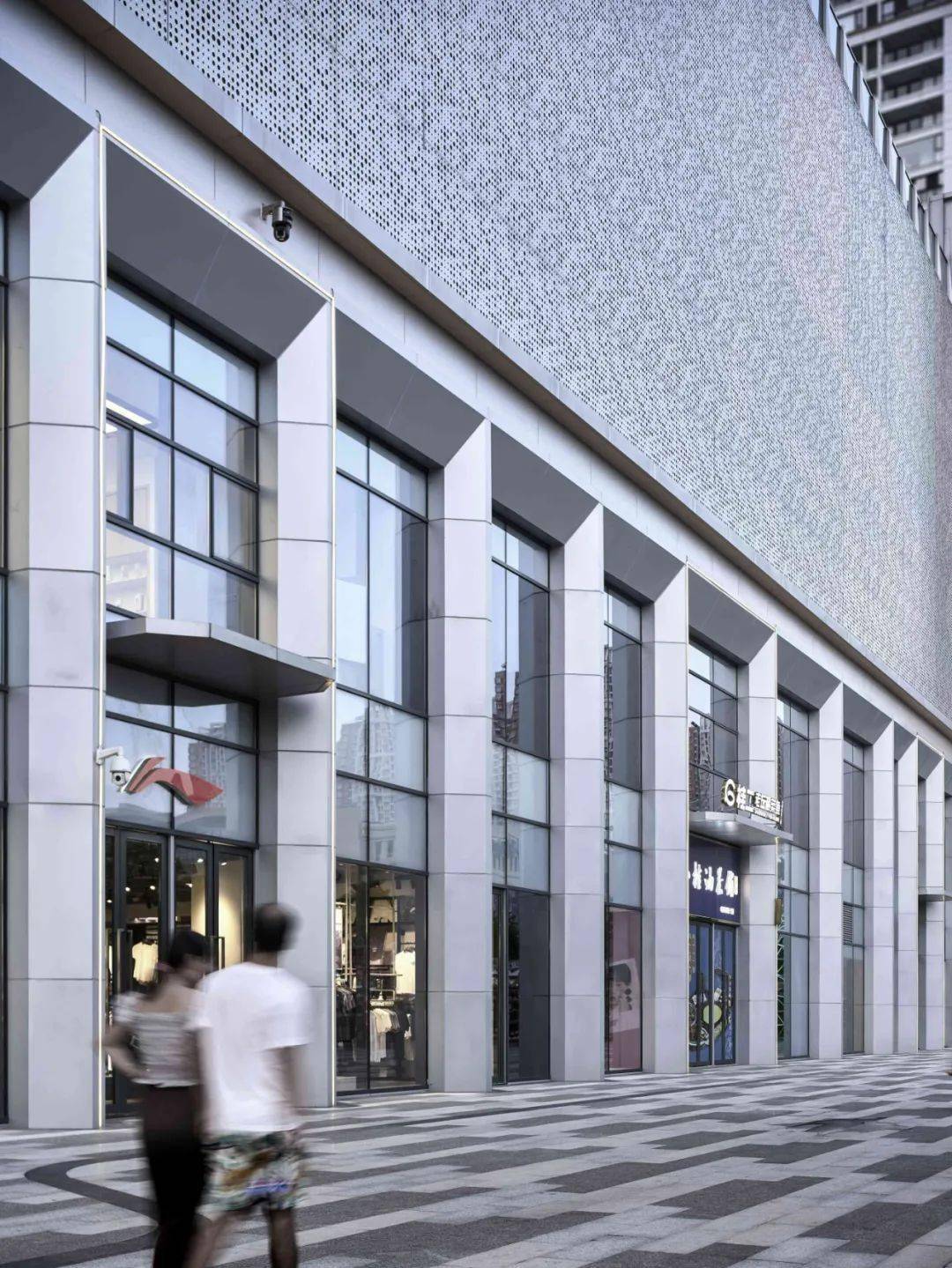 商业立面以基本单元分割空间,从母题衍生出多种元素组合,形成具有品质感和时尚感的形象;