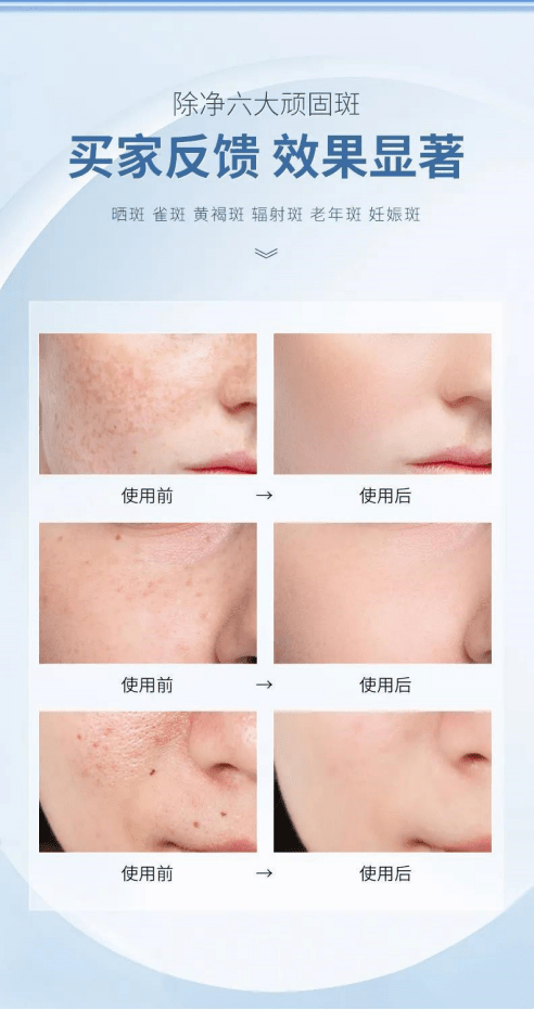 同时在祛斑过程中,能够调节细胞代谢,修复受损基底细胞,加速色素分解排出,实现自然健康的肌肤,保持更长久的好状态!质地清爽,上脸好推开,用起来很舒服,早晚都可以使用,你会发现斑斑点点逐渐减小、变淡、消失!