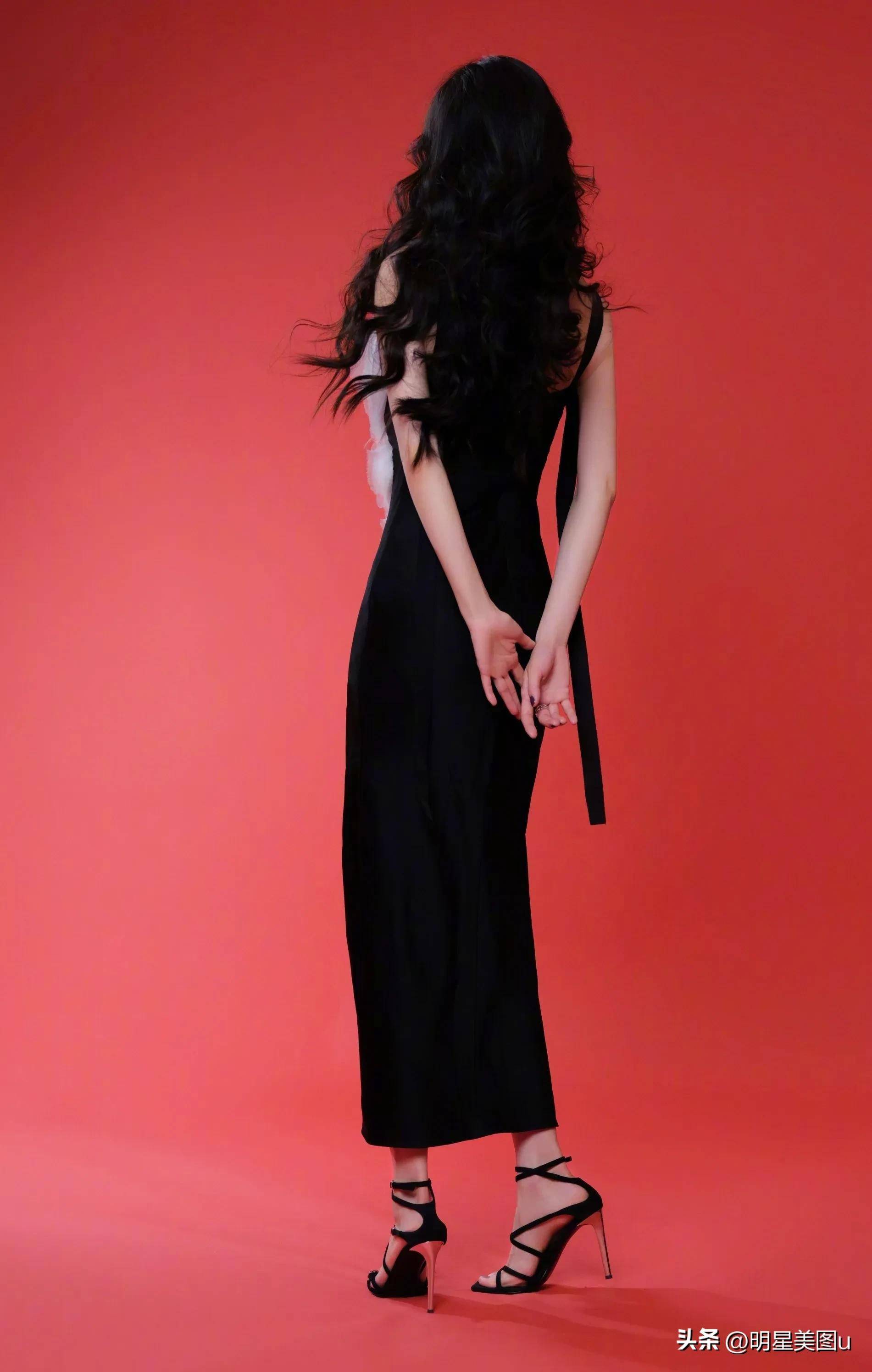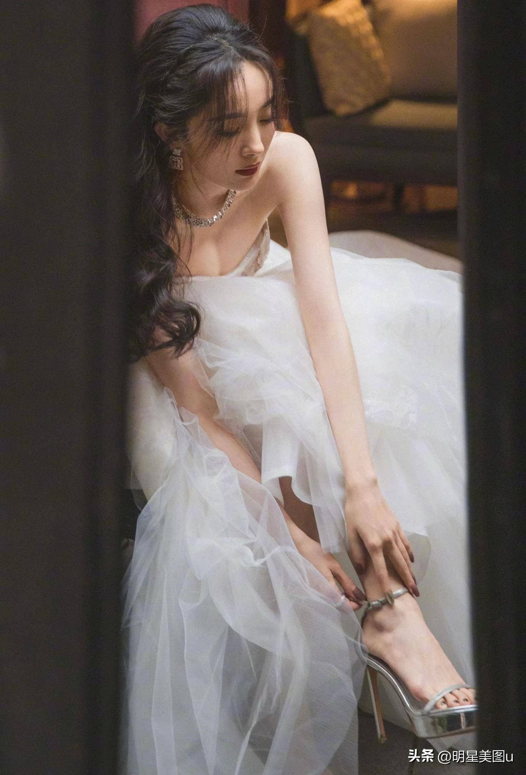 最后一套,女神杨幂身穿白色和黑色搭配的礼服,脚踩黑色性感高跟凉鞋,美极了!