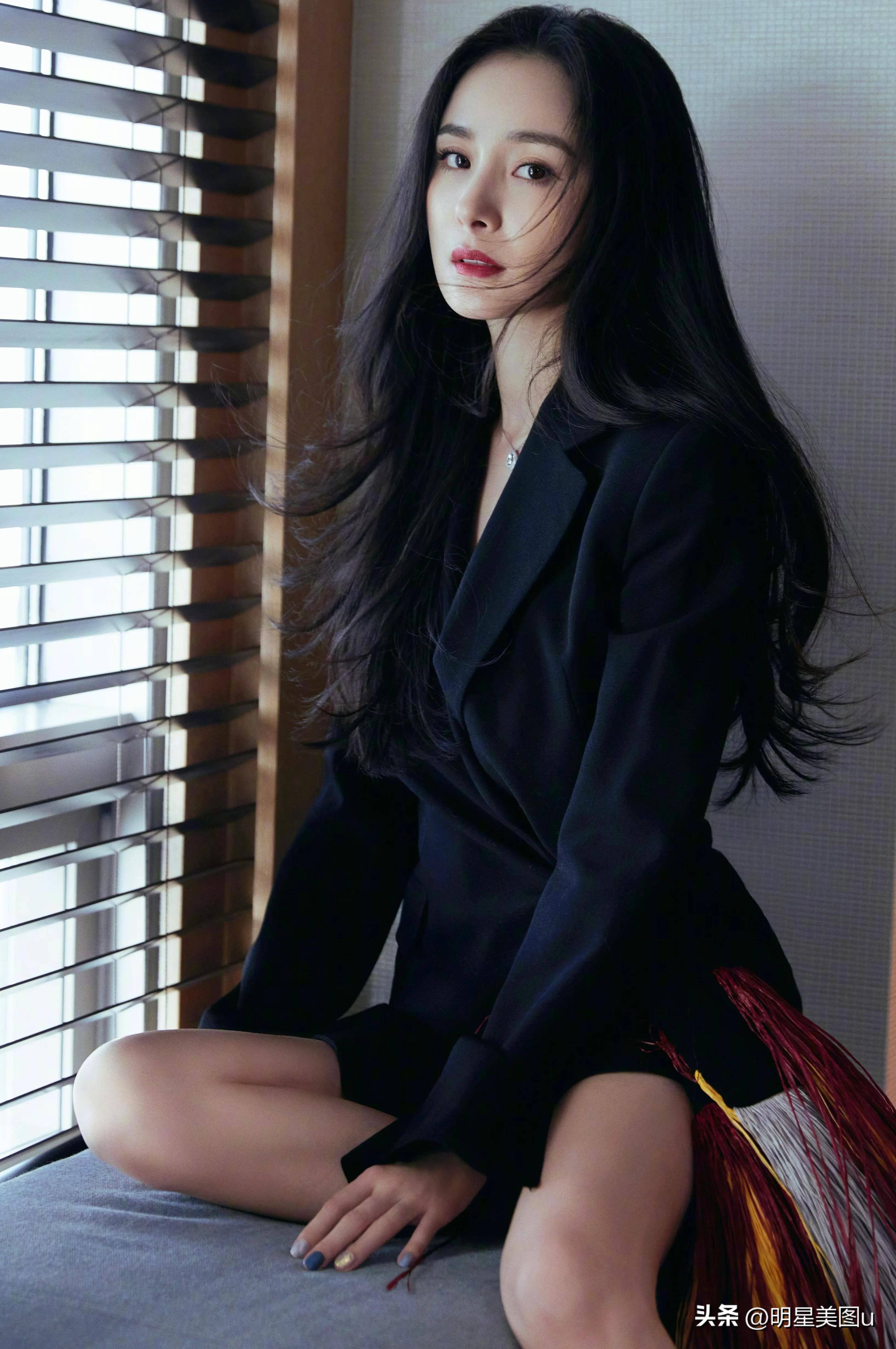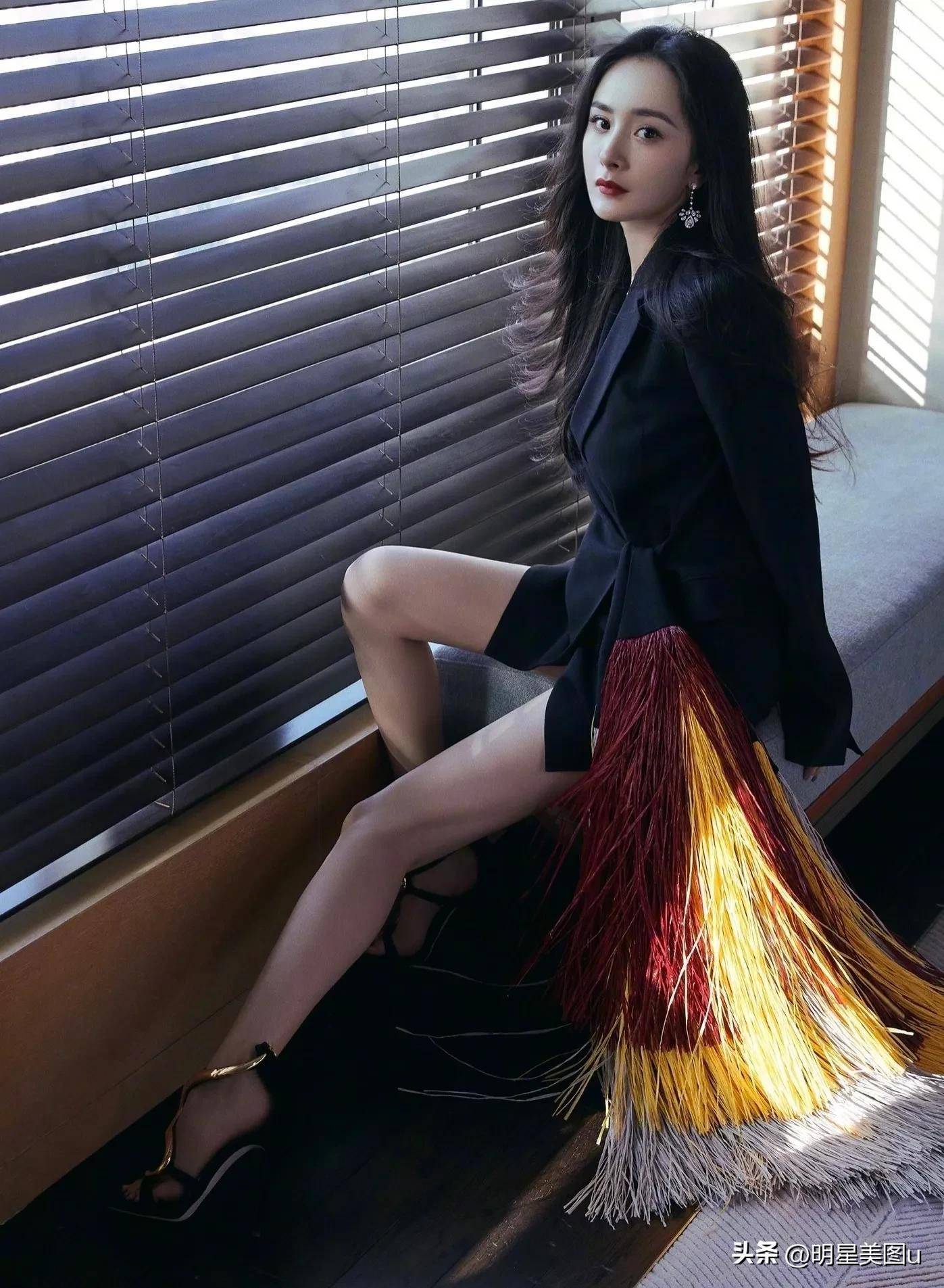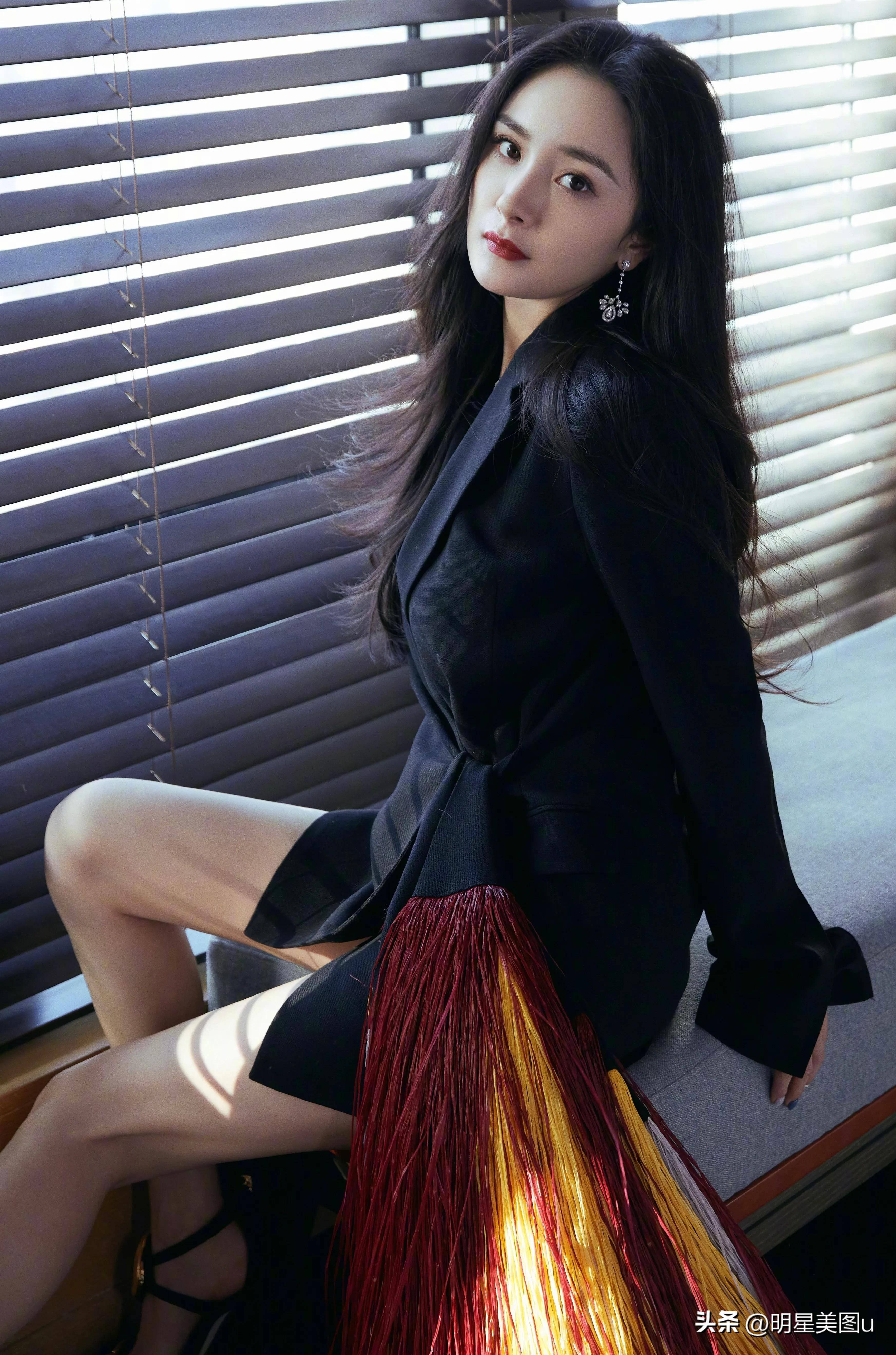 第三套,女神杨幂身穿黑色西装搭配黑色高跟凉鞋,越看越美!