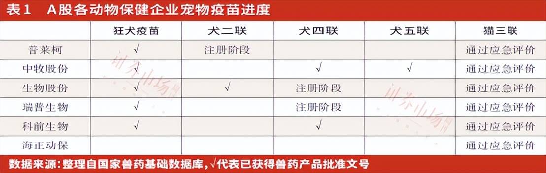 比如剑指硕腾“妙三多”的猫三联疫苗。猫三联是用于预防猫细小病毒、疱疹病毒和杯状病毒的疫苗,硕腾自2011年进入中国市场至今仍是惟一获批的猫三联疫苗,但随着今年瑞普生物、哈药集团、博莱得利、普莱柯、中牧股份、科前生物等先后通过农业农村部的应急评价,或许“妙三多”一家独大的局面很快就要被打破,首批推出产品的疫苗企业有望率先抢占市场获得先发优势。