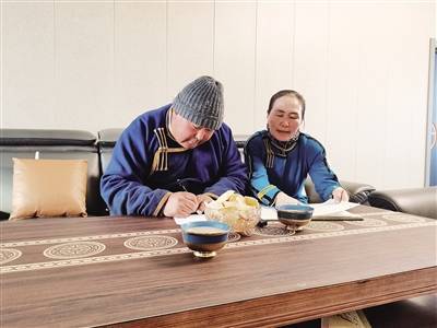 孟和吉日嘎拉、乌兰夫妻正在记账