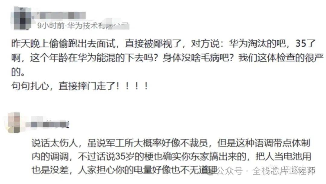 但是有些体制内企业对华为出来的超过35岁的员工的歧视态度令小编不解,一些以人为本的企业主认为35岁的技术人员是价值最高的宝藏,专业能力强,技术独当一面,又能带3-5个年轻人,除非产品线砍掉无差别干掉员工。又要应届生的工资又要十年的技术水平,显然不合理的,技术行业35岁危机不能人云亦云,华为内部35岁员工多了去了,我们不是35就失业,我们只是35岁需要变得更有价值,能力更全面!互联网35岁危机远比芯片行业大,我们芯片行业十年才刚刚入门!