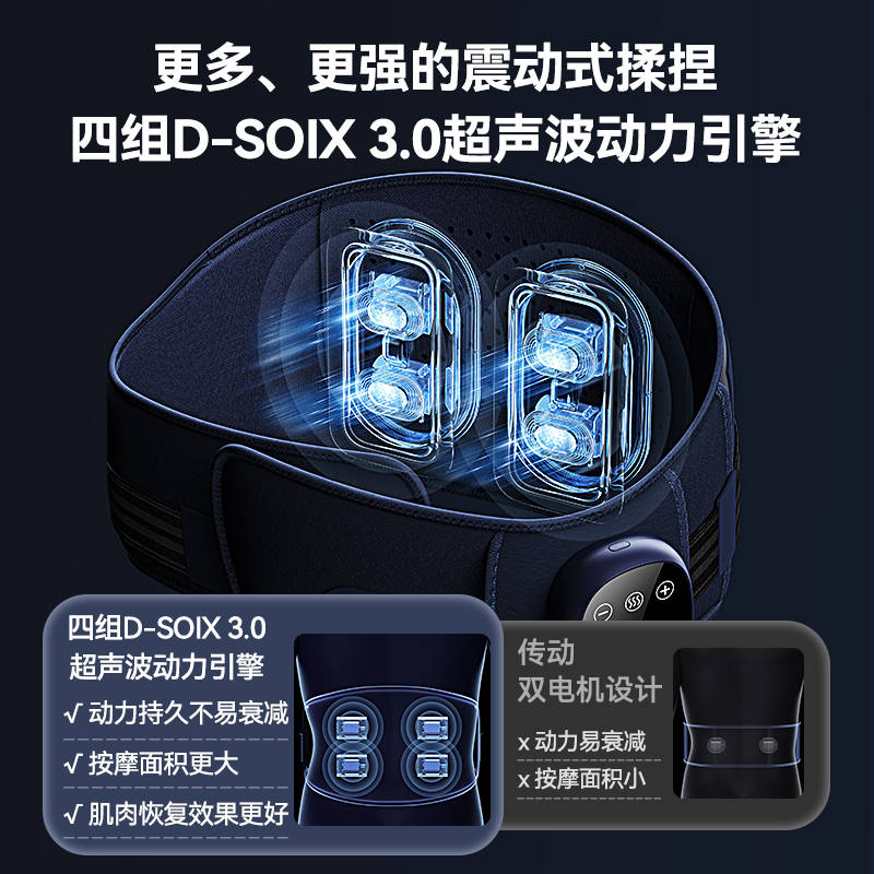 在性能测试中,未野腰部按摩器给我的感觉就是非常舒服,算是测评中的五款中,按摩得最使人放松,因为它采用的是双气囊与超声波震动的按摩方式,按摩过程中就像是真人在腰部按摩。而且这款腰部按摩器非常贴合人体曲线,能给到腰部一定的支撑。未野的腰部按摩器按摩的非常广泛,全方位的照顾到整个腰部,像腰部的肌肉、脂肪都可以按摩到位,而且长时间使用下,腰部肌肉状况得到显著改善。相较于传统震动按摩器,未野采用的升级版四组D-SOIX 3.0超声波动力引擎确保了持续稳定的动力输出,可以充分享受舒适的按摩体验。