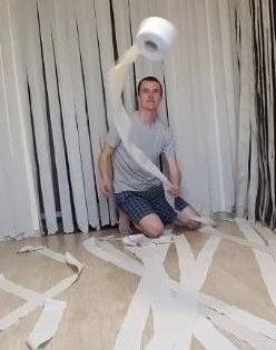 “我们买了整整100卷卫生纸,我们要把整个房间铺满卫生纸,看看它的反应!”