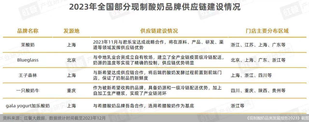 从目前活跃在市场的现制酸奶品牌来看,不少品牌的确正在不同环节发力,试图解决上述问题。例如,部分品牌从小众水果、养生补品等小料切入,在健康形象、话题度上博得关注。还有就是押注在供应链上,从奶源上入手,与奶源供应商联手,确保供应链的稳定性。