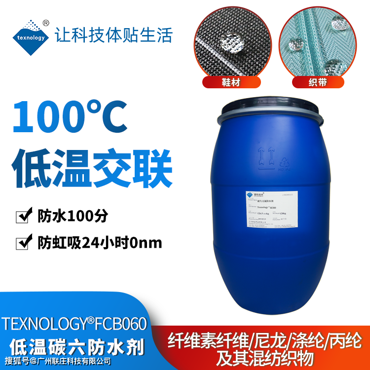 ? 解决方法:选用交联温度要求较低,能够在100℃温度条件下交联成膜的织带低温防水剂Texnology®FCB060。