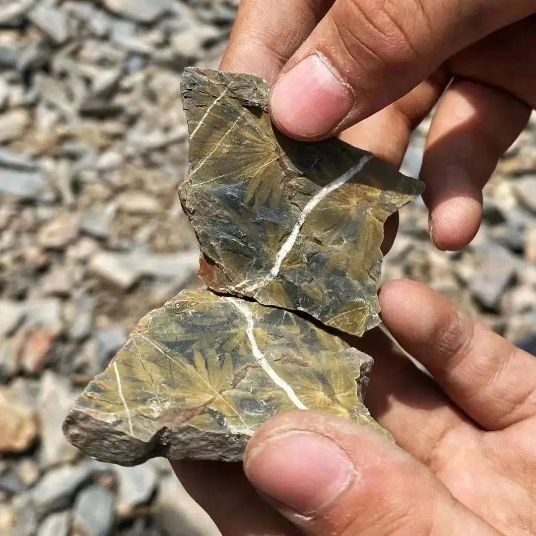 在经过了耐心、细心的寻找以及小心翼翼的敲击后,6岁的丫丫小朋友找到了一颗完整的轮叶化石。