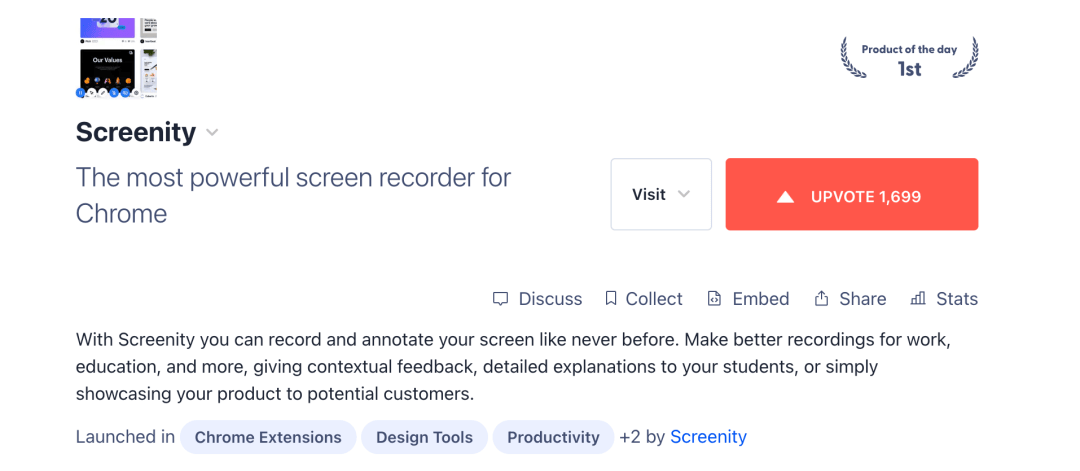 ProductHunt 是国外一个展示软件的权威平台,里面有大量开发者提交自己的最新产品,让大家体验并打分。能进入榜单的 App ,往往都有质量保证。