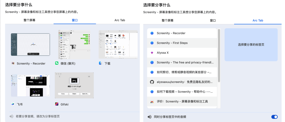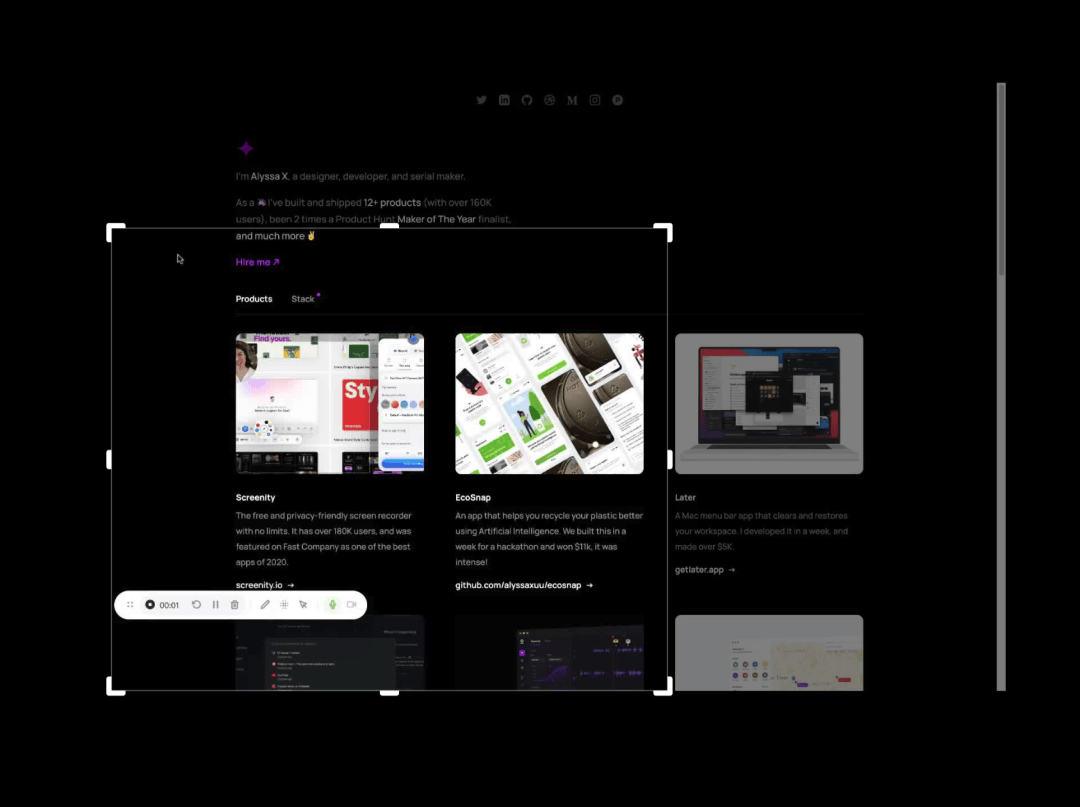 除了网页, Screenity 其实也支持录制整个电脑屏幕,或者某个应用程序。