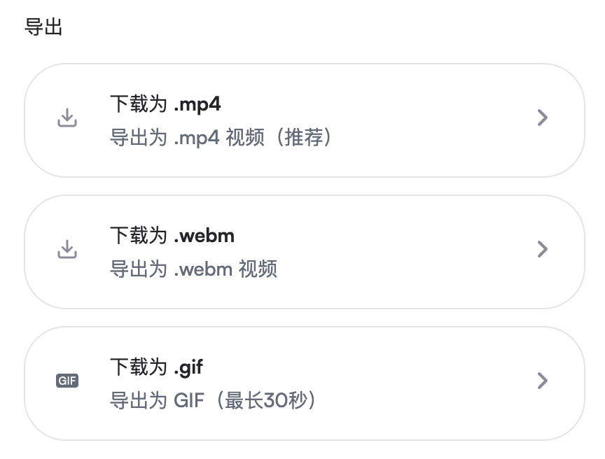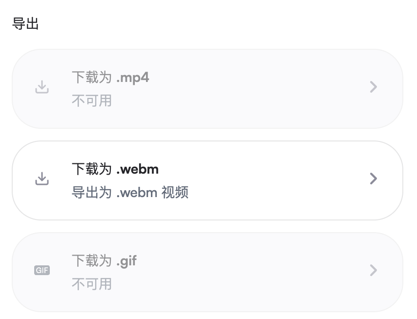 此时,你只可以下载 webm 格式的视频文件或原始录制格式。