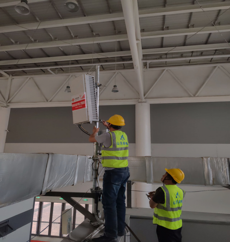 作为本次活动的重要通信保障单位,临沂联通周密安排、统筹推进通信保障、网络安全、信息化服务、客户服务等各项工作,以高度的社会责任感和专业的保障能力做好各项通信服务和网络安全保障工作。博览中心原2.1G频段5G网络难以满足本次展会的网络容量需求,在接到保障通知后,临沂联通迅速协调部署,协调抱杆安装及保障物资到位,24日安排施工单位山东邮电完成设备安装安装、开通。在1-3号展馆分别安装1台64TRAAU,增强信号覆盖及网络容量,为展会通信流畅保驾护航。