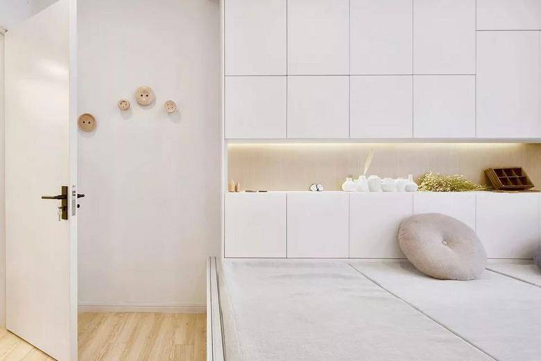 翻新的主卧采用榻榻米风格,左右全是橱柜,拥有非常多的储物空间。