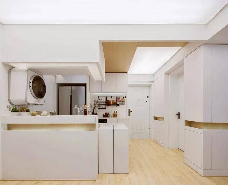 西厨打开门,便为中厨,可满足中式家庭日常饮食。白色的设计也同样体现出宽敞开放的空间。