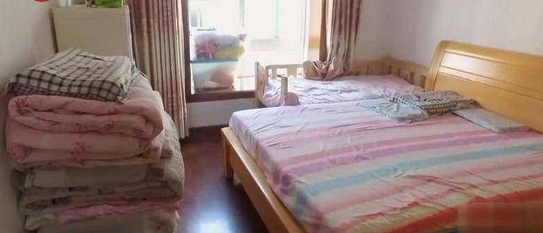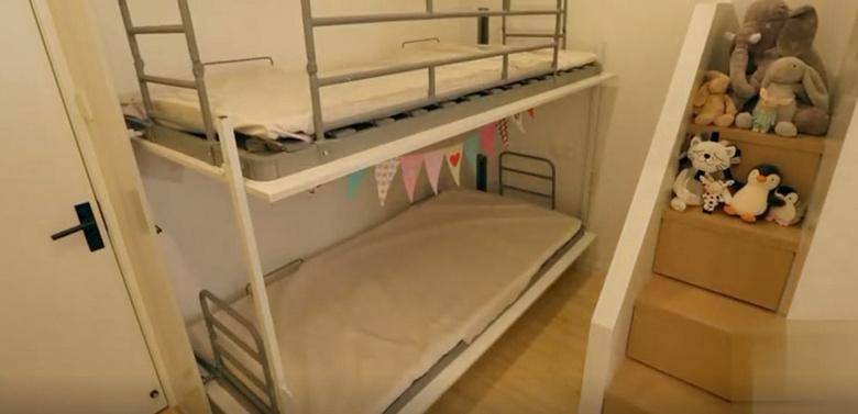 您肯定在想,这对双胞胎都睡哪儿去了?原设计者把双人床藏在门旁边,平时收起来,就是一面墙;晚上睡觉,再打开,就是双人床。