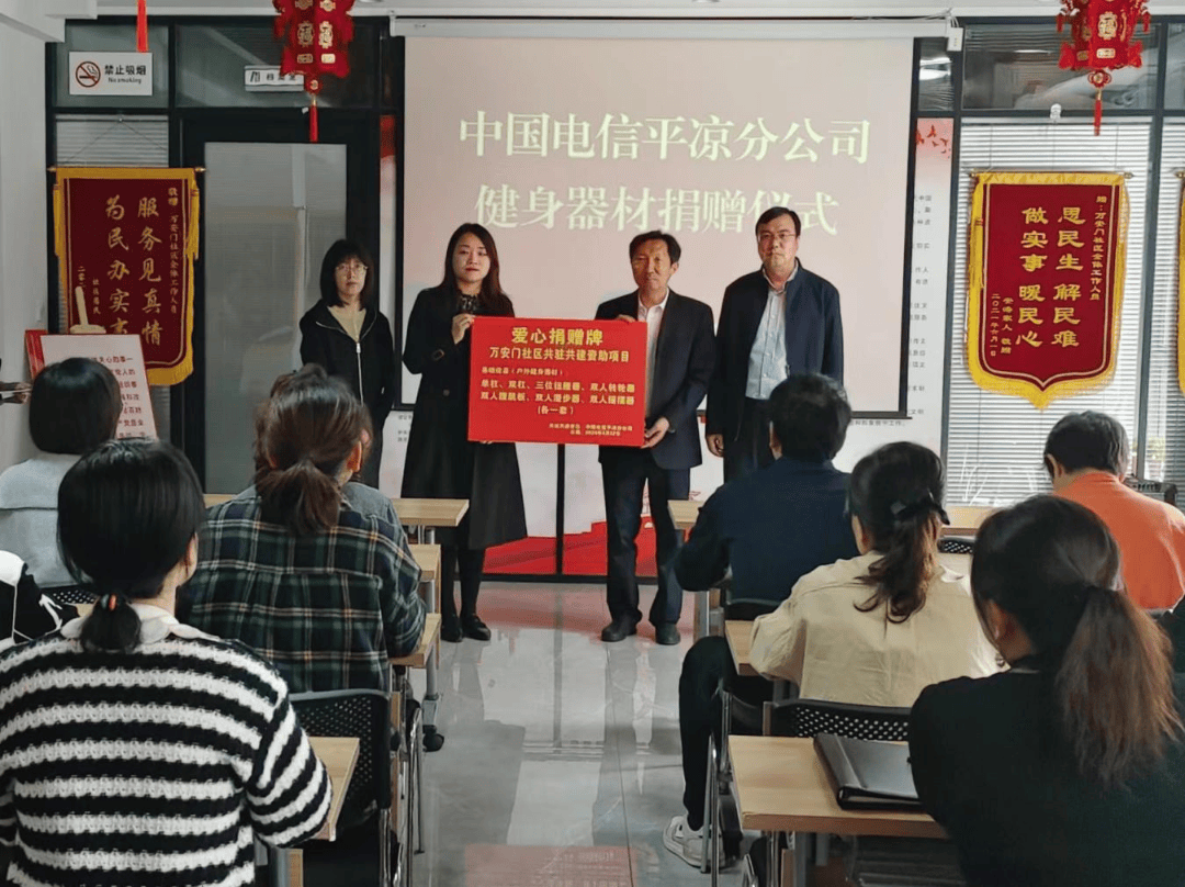 “让我们再次以热烈的掌声感谢中国电信平凉分公司为辖区捐赠健身器材”……阵阵掌声代表着居民们的喜悦与感激之情。4月22日,中街街道万安门社区的会议室中举行了一场简单而隆重的捐赠仪式,中国电信平凉分公司作为辖区共驻共建单位立足社区工作实际,为辖区居民的健康生活再添助力。