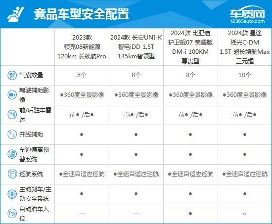 此次对比选取了相对走量的2023款领克08新能源入门版本,以及与其价格相近的三款插电混动竞品车型。通过对比来看,四款车型的动力规格和安全性配置表现相差不大。其中,2023款领克08新能源与2024款星途瑶光C-DM车内配置相似,均提供了另外两款车型所不具备的前排座椅按摩以及后排独立空调等,表现更为出色。