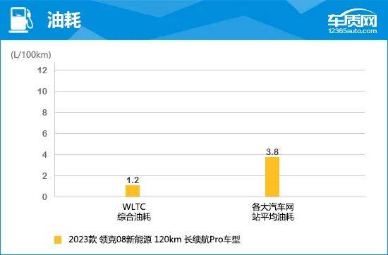 车质网综合各汽车垂直网站的统计数据,得出2023款领克08新能源的车主实际电耗为18.1kWh/100km,120km长续航Pro车型的实际油耗为3.8L/100km(仅供参考)。