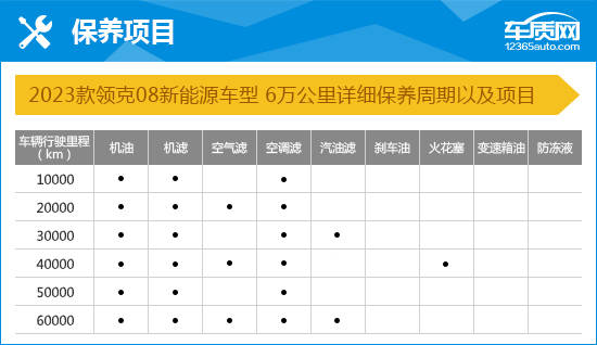 2023款领克08新能源的整车质保期为五年或10万公里,三电系统首任车主终身质保。保养方面,全系车型需要在10000公里或12个月(以先到为准)时进行首保,保养项目为更换机油、机滤和空调滤芯,此后每10000公里需要更换一次。空气滤芯每20000公里更换一次;汽油滤芯每30000公里更换一次。此外,变速箱油每80000公里或48个月更换一次,刹车油每24个月更换一次,防冻液每48个月更换一次。在“百名车主评新车”调查中,对于2023款领克08新能源使用成本的评价,表示“非常满意”和“满意”的车主占比分别为28.2%和45.7%,认为“一般”的车主占比为21.4%,给出“不满意”评价的车主占比仅为4.7%。