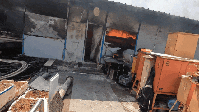 大量浓烟从活动板房内冒出