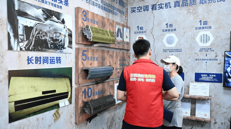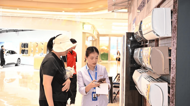 “之前找了回收家电的,人家只给几十块钱,太便宜了。”前来咨询换新活动的刘女士表示,家里的空调用了七八年了,想换台新的,可旧空调又不想便宜处理,就一直没换。
