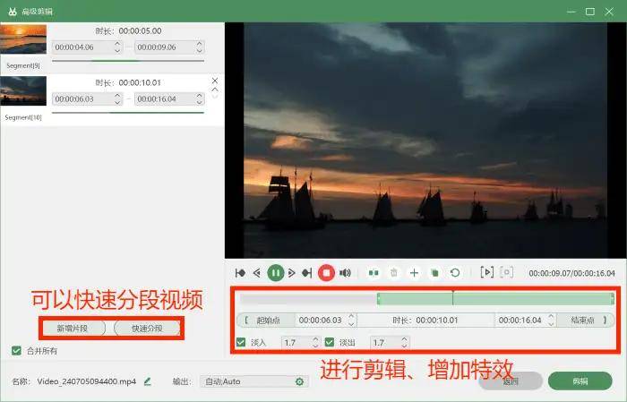 步骤4:录制完成后,就可以在软件中预览视频并且进行编辑了,如剪辑、添加水印、快速分段等。然后一个完美的屏幕录制视频就可以呈现你的眼前啦。