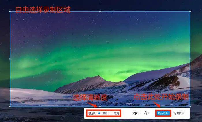步骤2:在录屏界面中,自由选择需要录制的屏幕区域。你可以拖动鼠标来框选区域,或者选择全屏录制。