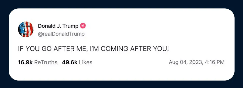 “如果你对付我,我就会对付你。”特朗普去年8月用大写字母写下的这条帖文,或许正成为美国政坛未来四年的一则预言。