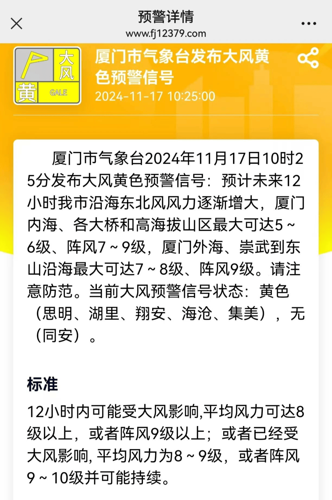 厦鼓航线:5级、阵风6~7级,其中18日白天将短暂出现6级、阵风7~8级;